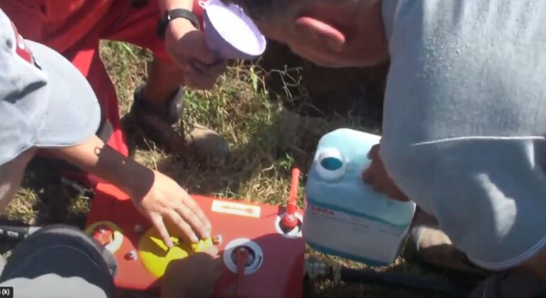 • Curățare internă: Utilizați dispozitivul TERRA-Cleaner Bio 500 pentru curățarea internă, mai ales dacă pistonul principal este gripat. Se toarnă între 0,2 și 0,4 litri de TERRA-Cleaner în furtunul scurt al forezei, se conectează foreza la compresor, iar aceasta este lăsată să funcționeze timp de 20-30 de secunde pentru a elibera pistonul gripat.